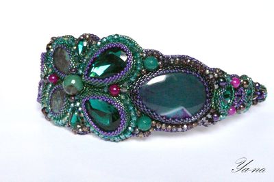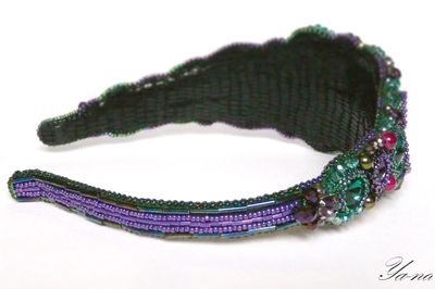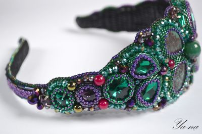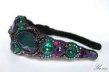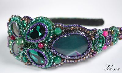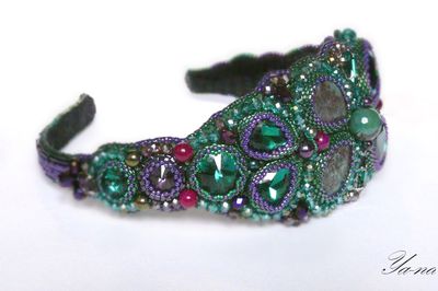 Великолепный ободок, вышитый японским бисером, камнями, чешским бусинами и бусинами из натуральных камней, поистине царское украшение для леди, которая любит привлечь к себе внимание! На солнце стразы, бисер и бусины "играют" и "горят". Узор на ободке напоминает форму бабочки. Подойдет на любой случай, послужит оригинальным и неповторимым подарком для любимой! Выполнен в единственном экземпляре. неповторимое украшение для волос. Повтора не будет. Доставка по России ключена в стоимость. Материалы: агат, бисер японский, гранёные бусины, стразы, натуральная кожа, бусины из натуральных камней Размер: Стандартный в длину, в ширину в самой широкой части-6 см, в узкой-1.5 см