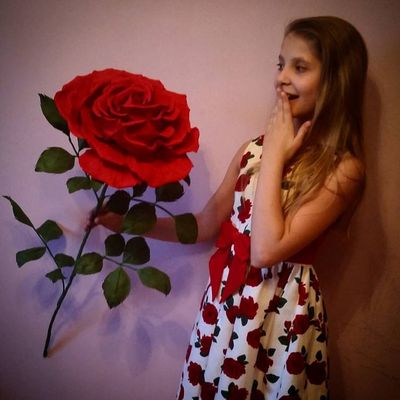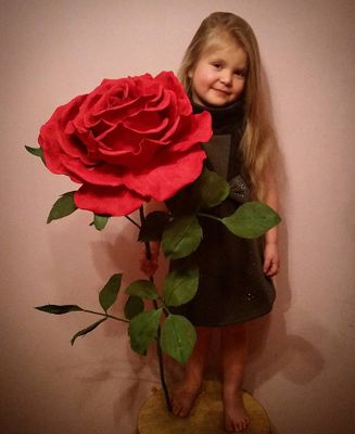 Роза выполнена из фоамирана (материала, который не боится воды, сминания). Необычный подарок на любой случай . Длина стебля 80 см, диаметр цветка 25-30 см