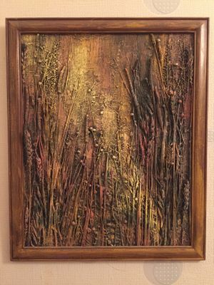 Коллаж, Терра, размер 46*56, структурная паста, природные материалы, акриловый краски, деревянная рамка.