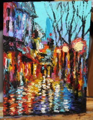 Картина маслом написана на холсте размера 20х30 при помощи мастихина