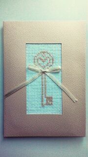 Открытка в конверте на новоселье. Ключ вышит крестиком.