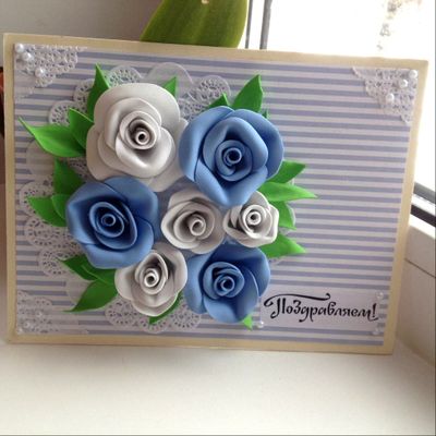 Открытка ручной работы "Поздравляем". Размер изделия 17,5*14. Открытка односторонняя, на основе плотного картона. Цветы из фоамирана