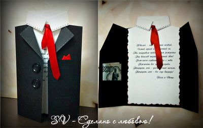 Открытка для мужчины, внутри карман для денег #otkritka#myj