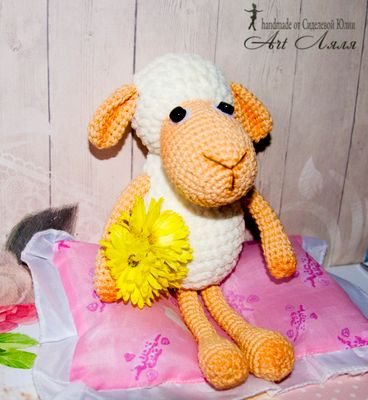 Овечка связана крючком из приятной мягкой пряжи.