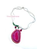 Колье из жёлтого и фиолетового агата на кожаном шнуре
