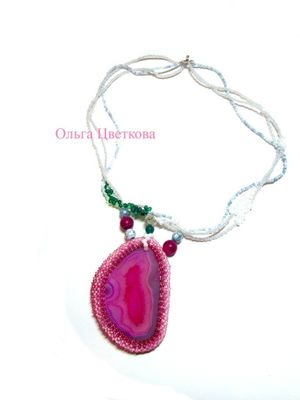 Авторская работа из натурального тонированного агата, пёстрых агатов, японского бисера