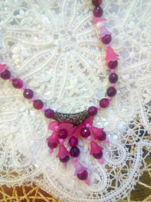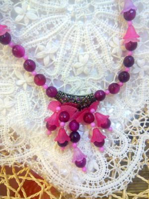 Авторское ожерелье из натурального тонированного агата, жадеита и акрила