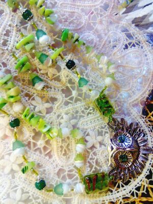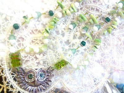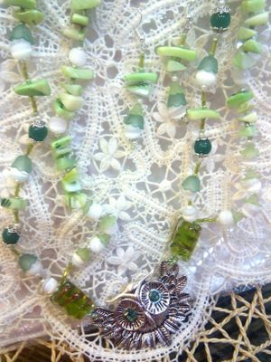 Авторское ожерелье ручной работы с перламутром, агатом и бусинами Лэмпворк