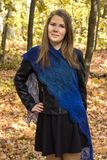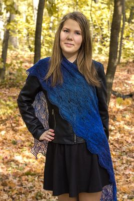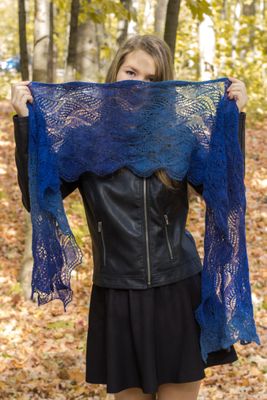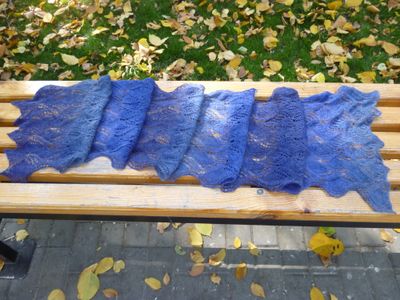 Палантин (40 на 200 см) связан из пряжи Кауни настоящих джинсовых цветов, производящейся на маленькой фабрике в Эстонии. 100% шерсть овец из Австралии и Новой Зеландии окрашивают в пряжу с волшебными переходами цветов. Эту пряжу нельзя назвать мягкой и шелковистой, она не для неженок, но она очень теплая, прекрасно носится. Изделия из этой пряжи можно стирать в машинке на режиме "Шерсть" .