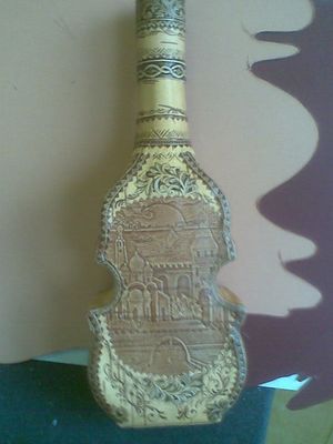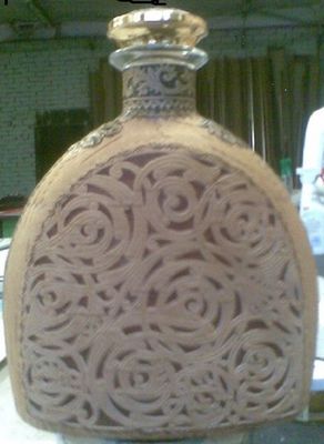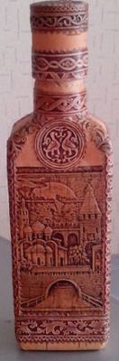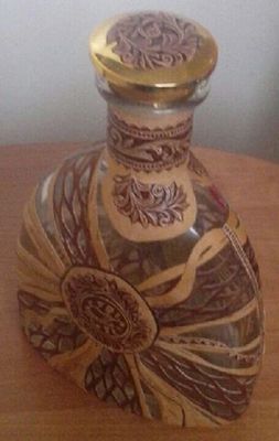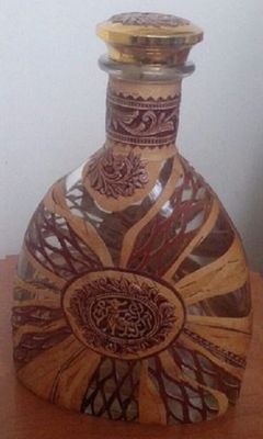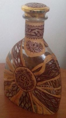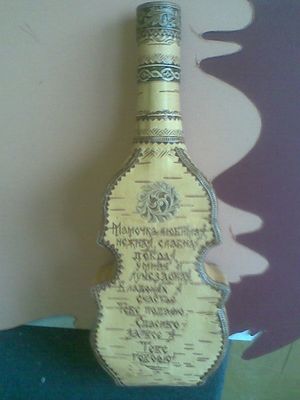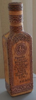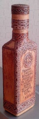 Стеклянная бутыль. любой формы. С любым текстом (по желанию заказчика). Оформляется берестой и берестяным тиснением.