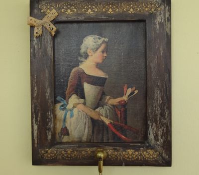 Когда-то, очень давно, мгновение запечатлело радостное состояние одной девочки, которой не терпится порезвиться с друзьями… Цените каждый миг нашей жизни! Панно-ключница_Девочка с воланом - необычное и интересное решение для Вашей прихожей, оно также прекрасно впишется в интерьер гостиной. В работе использован сюжет картины французского художника Жана Симеона Шардена Девочка с воланом. Панно очень-очень старое… Декоративное панно из массива сосны состарено с помощью многослойного морения, окрашивания, патинирования. Декорировано в технике декупаж с использованием объёмных элементов. На задней стенке металлические подвесы. Декоративный подвес в виде сердца является частью панно. Оригинальное панно можно подарить женщинам, близким или друзьям. Размер 25 см х 30 см. Рекомендации по уходу Умеренная влажная обработка.