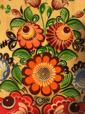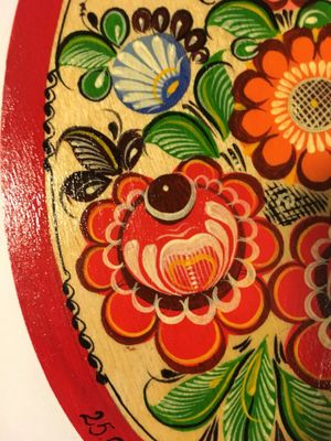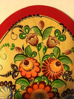 Небольшое панно с классическим городецким букетом из роз, купавок и колокольчиков. Роспись передает летнюю теплоту, яркость и свежесть красок полевых и садовых цветов. Изделие украсит Ваш дом, привнесет в Вашу жизнь якрие краски и хорошее настроение. Заготовка из ДВП, акриловые краски, лак.