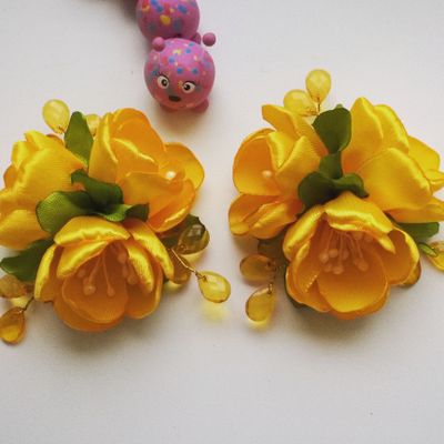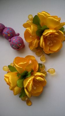 Набор заколок выполнен из атласных лент. Цветы прикреплены к основе (заколка алигатор) 4,5 см. Диаметр букетика 6см. Этот набор прекрасное украшение и подарок для ваших красавиц.