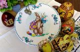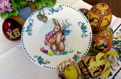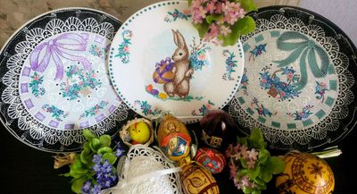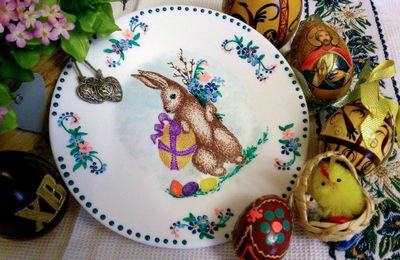 размер тарелочки 19,5 Легенда о пасхальном зайце впервые документально отмечена в XVI веке. В 1680 году был опубликован первый рассказ о кролике, откладывающем яйца и прячущем их в саду. Праздник «Остер Хазе» (Osterhase) считался одной из «величайших радостей детства». Его ждали так же, как и подарков на Рождество.