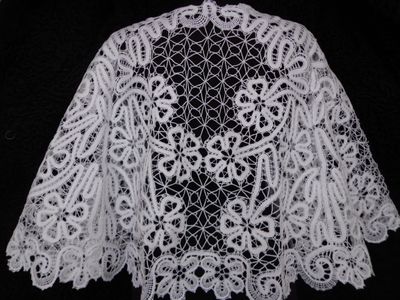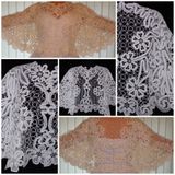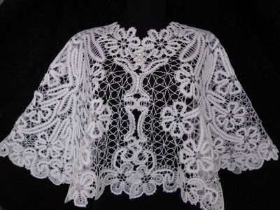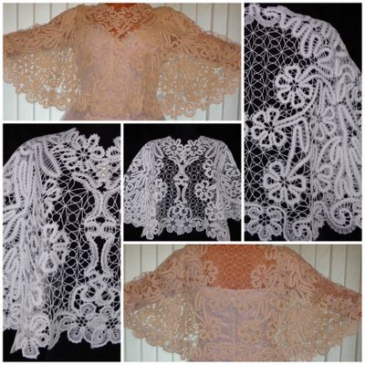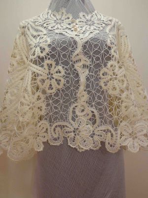 Пелерины сплетены на коклюшках в технике "Вологодское кружево" 1вариант:Пелерина кружевная "Белая акация ", фасон с боковыми клиньями.Рисунок цветочный. 2вариант: Пелерина кружевная "Белая акация -экрю"сплетена на коклюшках в технике "Вологодское кружево" .Нитка лён,хлопок 100%молочно-кремового цвета 3 вариант: Фасон классического покроя с рисунком содержащим растительный орнамент.