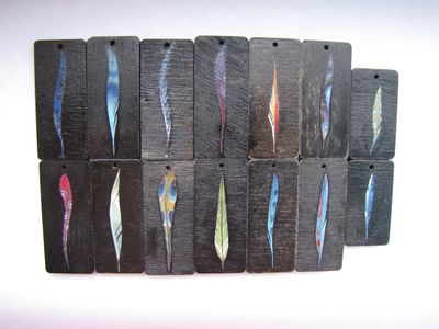 Перья и пёрышки. В виде кулонов и серёжек. Их можно собрать в любой комбинации (как по отдельности, так и в наборе). папье-маше/дерево, темпера, лак