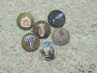 Мы очень любим инди-игры, и хотим поделиться с вами одними из любимых героев. Йозеф, Гомез и "обитатели дерева": Mr. Twig, Mr. Poppy Head, Mr. Feather, Ms. Mushroom, Mr. Lantern Брошь. роспись темперными красками по дереву. диаметр: 4 см