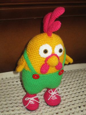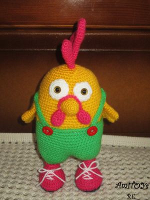 Модный петух с красивым гребешком. Глаза на безопасном креплении. Руки-ноги не подвижны. Одежда не съемная. Стоит с опорой. Подойдет в качестве нового друга для вашего малыша, а так же как знак внимания, сувенира