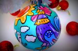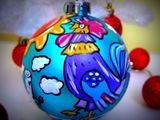 Пластиковый елочный шар с ручной росписью акриловыми красками. Диаметр шара 8 см. Финишное покрытие - акриловый лак.