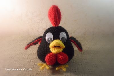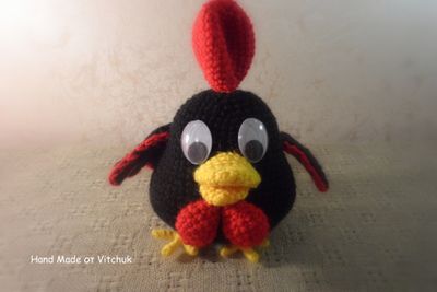 Связанный вручную символ 2017 года петушок. Высота игрушки 13 см вместе с хохолком. Можно повесить на ёлку или поставить на полку)