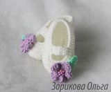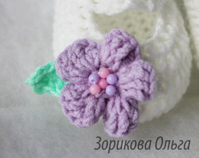 Связано крючком из детского акрила на возраст от 0-3 месяца. Украшены связанными цветами и бусинами. Отлично подойдет в подарок или для фотосессии.