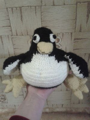 Твой новый друг за неделю - пингвин. Матерьял акрил, холофайбер. Исполнение - крючок, размер 20*20 см. Только назаказ. Стоимость игрушки 600 р.