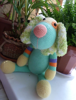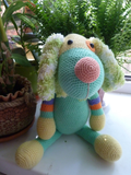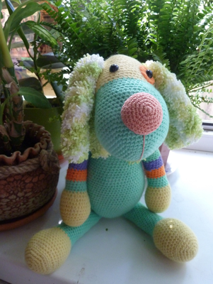 Изделие выполнено из бисерной пряжи: акрил высокообъёмный-100%. Уши, хвост и шарф выполнены из пряжи "Nazar Кроха": 100% микрополиэстер. Сидит без опоры. Рост- 23 см. Возможно выполнение на заказ в другом цвете.