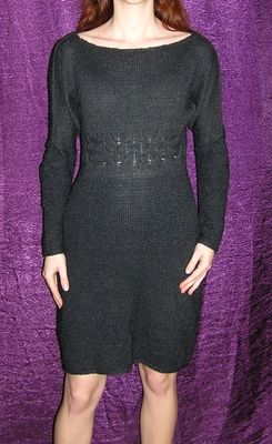 Вязаное шерстяное платье с узором из кос и рукавом "летучая мышь".