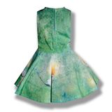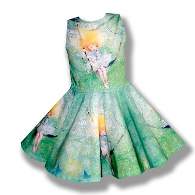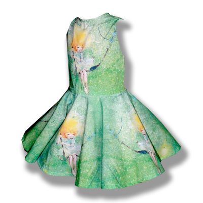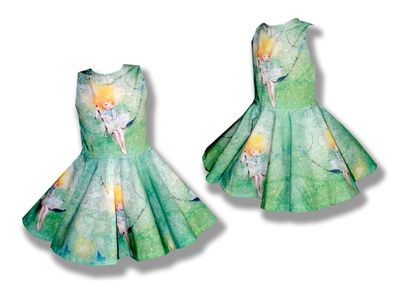 Детское платье выполнено с использованием техники сублимационной печати. Благодаря данной техники изделие получается ярким и практичным. Нежный рисунок в зеленых тонах с милой девочкой на качелях будет уместен теплым летним днем. Платье нарядное, юбка-солнце порадует юную модницу. Возможно изготовление платьев по индивидуальному эскизу. Мы можем добавить или убрать рукава. Вы можете заказать юбку-солнце.