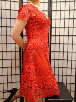 сплетено на коклюшках в технике"Елецкое кружево" Силуэт с завышенной линией талии и широкой юбкой, лиф с v-образным вырезом.Рисунок с декоративно-растительным орнаментом. Сочетание нескольких цветов (Красный,чёрный)Изделие продаётся без чехла.При смене цвета чехла изделие заиграет новыми красками и будет смотреться по-другому.