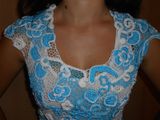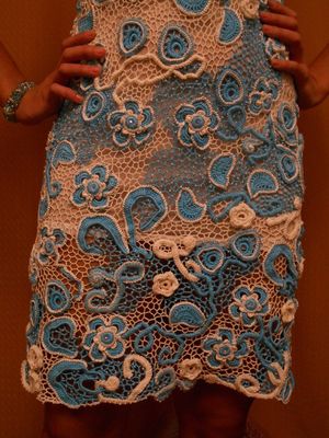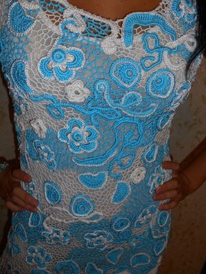 Модель выполнена в сложной технике наборного ирландского кружева из хлопка, хлопка с вискозой.Размер 42-44.Возможен повтор подобной на заказ по меркам заказчика в любой цветовой гамме и любого фасона.
