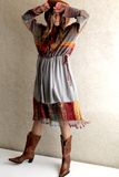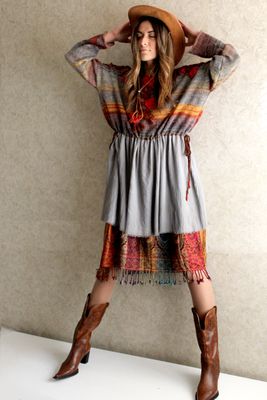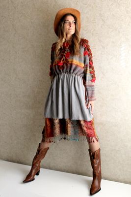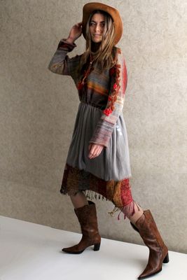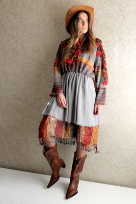 С осенью вдохновение на свои творения приходят с улицы. Когда деревья раскашиваются в желто красные цвета, хочется и в одежде повторить это недолгое время золотой осени. Милая и нежная туника связана из мохера с шелком нежнейшей тонкой ниточки окрашенной в полосы . Полосы как хотят так и непредсказуемо ложатся в вязке , тем и интересен лиф платья. Тем более что полоска это тренд не только этого года , но и следующего. Юбка из шелковистого шифона охлаждает лиф холодными серыми оттенками осеннего неба. На лифе вышивка крючком рябины, можно сказать это платье просто картина осенней природы. Удобно платье и объемом и кулисой , которую можно затянуть под свой размер. Нижнее платье из пашмины кашемир с шелком в осенних цветах. Платье позволяет найти множество образов, я предложила только один, а вам домысливать... В блоге больше фото этого платья.