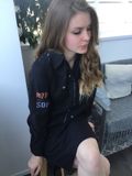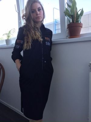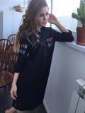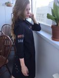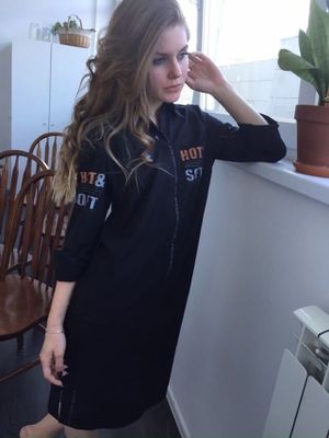 Платье-рубашка из чёрного тонкого хлопка с намыленным принтом. Классические атрибуты рубашки:планка до талии на полочке, рубашечный воротник и манжеты. Платье с карманАми в боковых швах и разрезами внизу. Яркий и стильный кежуал.