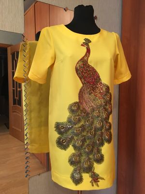 Яркое платье с вышивкой в виде жар-птицы. В таком наряде вы точно не останетесь без внимания. Платье прямое с коротким рукавом. Все параметры можно регулировать, длину платья и длину рукава делаю по желанию. Материал 100% полиэстер