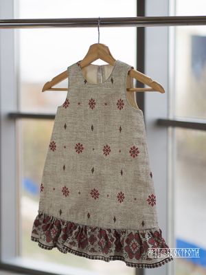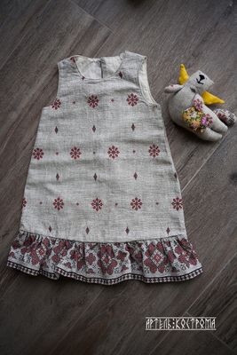 Платье-трапеция из рогожки с воланом (100% хлопок)