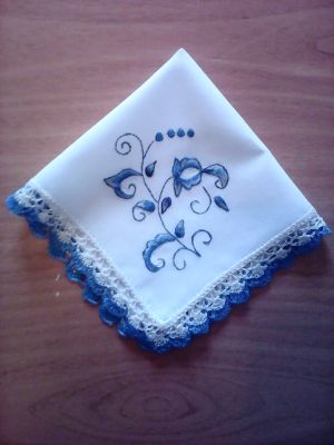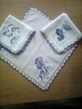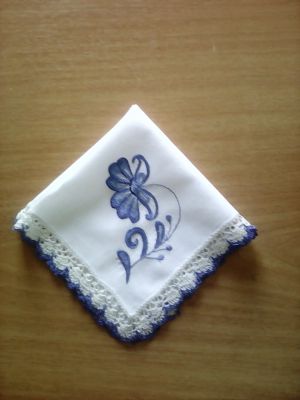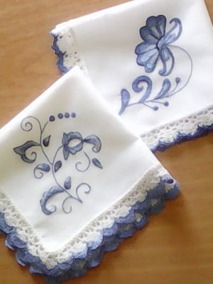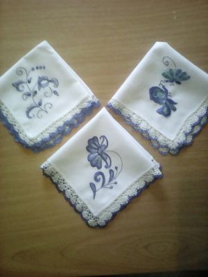 Платочки кружевные с вышивкой по гжельским мотивам.Полностью ручная работа.Покупка или заказ не менее двух штук.Цена указана за 1 платок.Оплата наличными при личной встрече,возможна отправка почтой при 100%-ой предоплате.Тел.89164023191