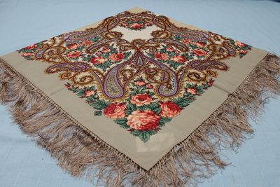 Платок шерстяной с шелковой бахромой "Час свиданья" 146х146см.Прямые поставки от производителя. Доставка по всей России.