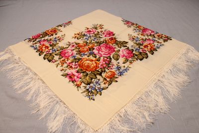 Платок шерстяной с просновками с шелковой бахромой "Весеннее цветение" 146х146см. Прямые поставки от производителя. Доставка по всей России.