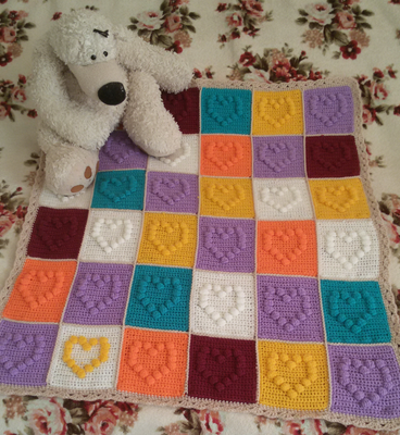 Плед связан крючком из акриловых ниток, предназначенных для детских изделий. Размер 70*70. Отличный подарок на рождение малыша.