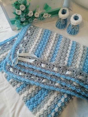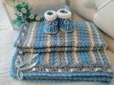Комплект "Подарок новорожденному" ( плед+ пинетки) размер пледа 86х110, использована пряжа NAKO Bebe 100, очень мягкая и приятная на ощупь пряжа предназначена для вязания детских вещей. Цветовая гамма выполнена для мальчика, возможны вариации цветов в повторе.