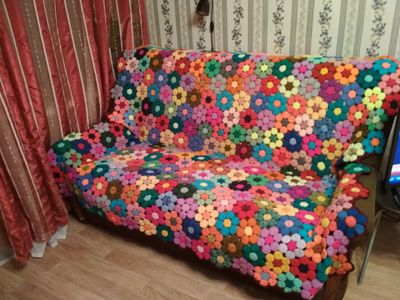 Плед ручной работы, объемное вязание крючком, шерсть +акрил, размер 190 *175, вес 5кг
