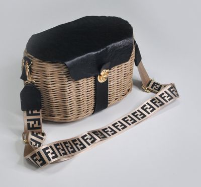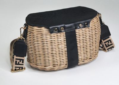 Плетеная сумка из бумажной лозы, обработана акриловым лаком. Отделка натуральная кожа. Размер дна 15х25см, обхват в широкой части 73 см, высота 16 см. На дне металлические ножки. Внутри хлопковая подкладка с карманом. Ремень может быть другого дизайна на ваш выбор. Срок изготовления 7 дней.