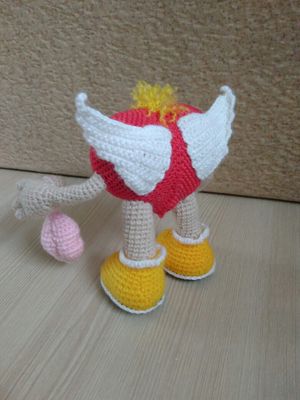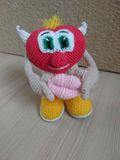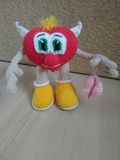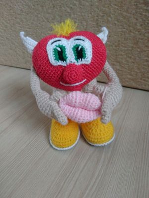 Рост 14 см,стоит самостоятельно.Ручки и ножки гнутся.Связан из хлопка и акрила.Наполнитель халлофайбер.