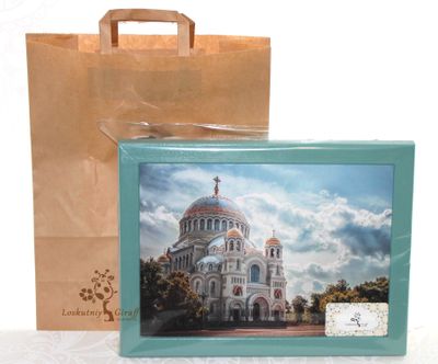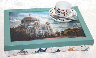 Сувенирный поднос для завтрака с изображением Морского собора в г. Кронштадте. Размер 30*40см,