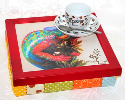 Этот поднос сделает каждое утро добрым,а вечер ярким. И наверняка поднимет даже самое тяжелое настроение. Размер 30*30 см. Поверхность покрыта безопасным лаком для пищевых поверхностей.