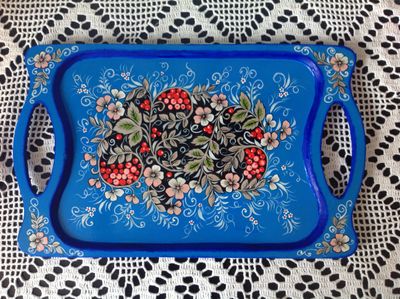 Вологодская роспись словно морозный узор на окне. Поднос из оргалита с ручной росписью. Не трафарет. Русский сувенир.