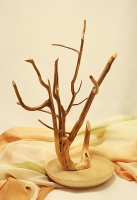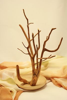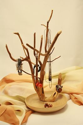 Необычное дерево-подставка для украшений или мелочей. Может быть прекрасным - оригинальным и уникальным - подарком. Каждое дерево неповторимо. Может использоваться как элемент декора интерьера. Дерево - можжевельник, обработана воском, подставка тарелочка. Украшения не продаются
