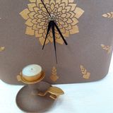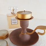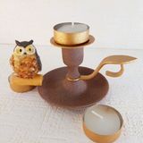 Подсвечник металлический. Высота 8см, ширина с ручкой 12см, диаметр блюдца 9см, диаметр верха 5см, Внутренний диаметр 2,3см, глубина под свечку 2,5 см. В единственном экземпляре. В комплект к подсвечнику продаются часы в этой же цветовой гамме. Цена комплекта 1200р. Три чайных свечи в окрашенных таблетках в подарок. По Москве бесплатная доставка к любой станции метро.