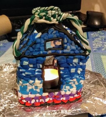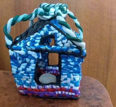 Мой первый домик из полимерки - самобытный и необычный. Отлично подходит для уютных посиделок при свечах. Размер (см): 8Х8Х11