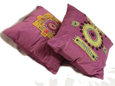 Верх подушки изготовлен из велюра , расшитого мулине , войлоком , бисером , стеклярусом , деревянными заготовками . Внутри подушка из тика , наполненного холофайбером . Размер 45 см * 45 см Прекрасно смотрится в интерьере в стиле бохо